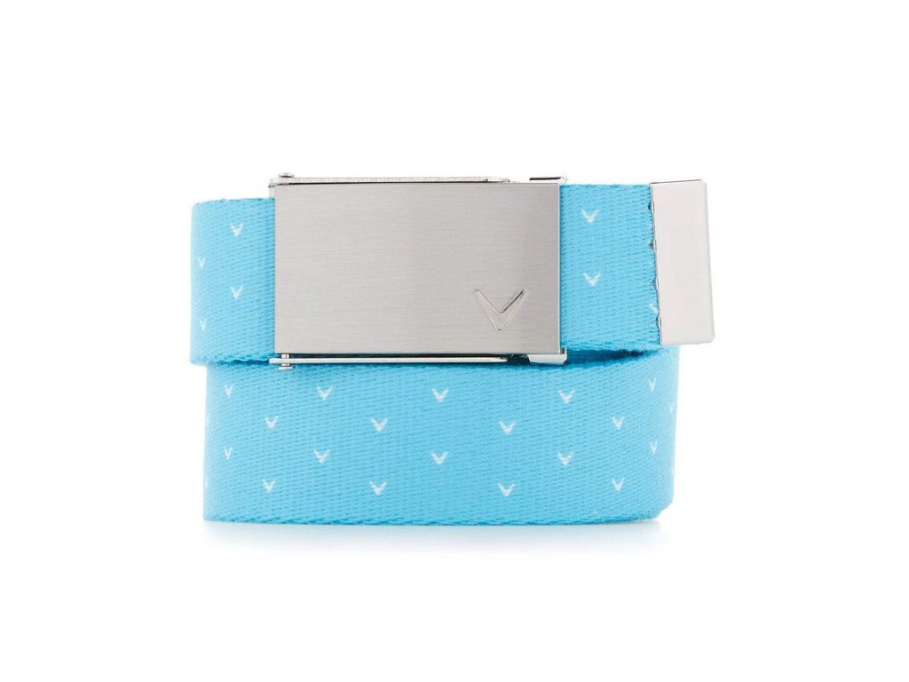 Golfový pásek Callaway Dámský golfový pásek světle modrý s bílými "callaway véčky". Pásek je hadrový a je snadné jej v případě nutnosti zkrátit. Mohou jej tedy mít i juniorky. Snadno pásek zkrátíte na požadovanou délku. Šířka pásku: 3cm. Délka pásku je do velikosti 42.Doplňkové parametry