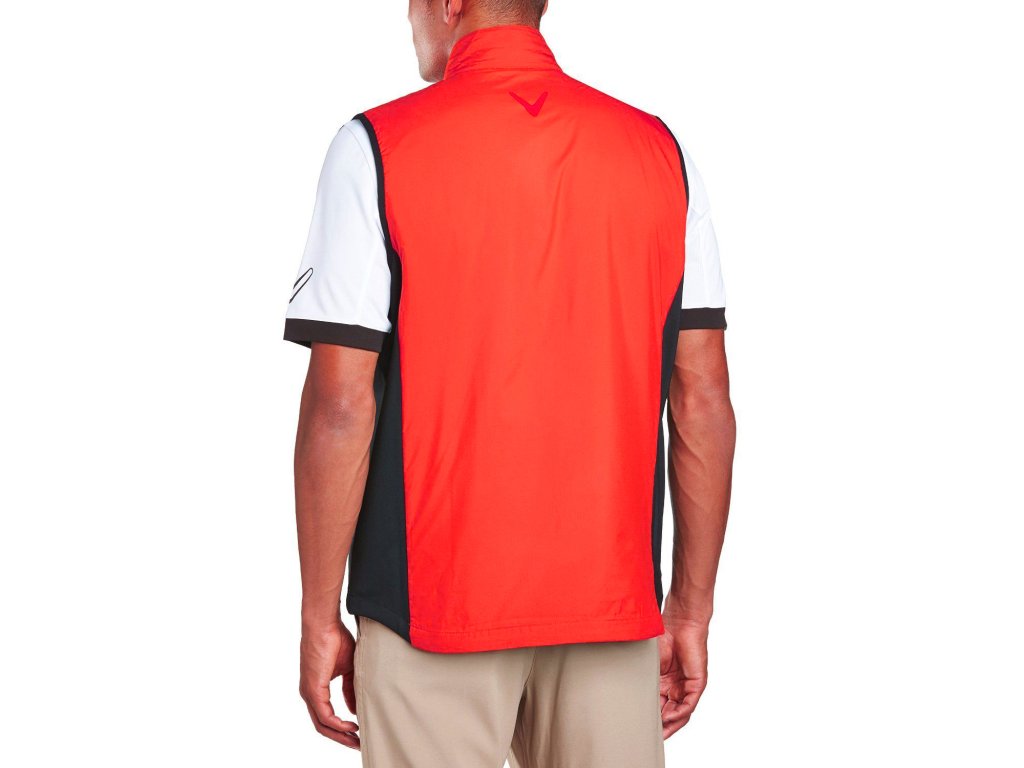 Golfové oblečení Callaway - funkční oblečení Pánská funkční golfová vesta Callaway v červené barvě je neprofoukavá, nepromokavá a hřejivá. Vhodná na jarní či podzimní golf. Zadní část vesty je delší aby při založení nefoukalo na záda. Materiál: přední a zadní část - 100% polyester, boky 94% polyester, 6% spandex, podšívka a vycpávka - 100% polyesterDoplňkové parametry