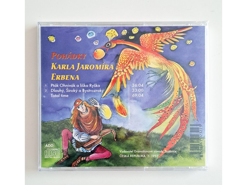 Pohádka na CD CD s pohádkami Karla Jaromíra Erbena o ptáku Ohnivákovi a lyšce Ryšce, o Dlouhým Širokým a Bystrozrakým. Celkový čas pohádek 69:04 minut Pohádky vyprávějí Věra Galatíková a Radovan Lukavský Track list: Pták Ohnivák a lyška Ryška 36:04 Dlouhý, Široký a Bystrozraký 33:00 Vydaly Gramofonové závody Loděnice v roce 1997Doplňkové parametry