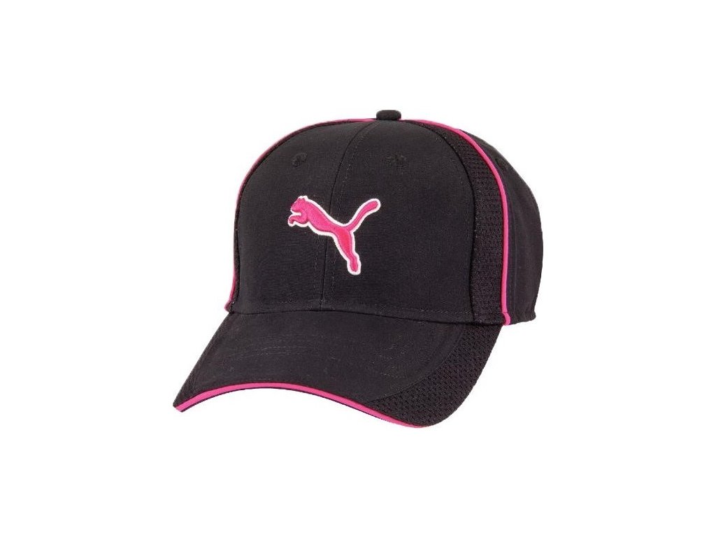 Golfová čepice Puma Dámská golfová čepice v černé barvě a růžovými doplňky. Čepice lze v zadní části velikostně upravit páskem.Přední část čepice je vyztužená, zadní část je z lehkého tenkého materiálu. Materiál: 100% polyesterDoplňkové parametry