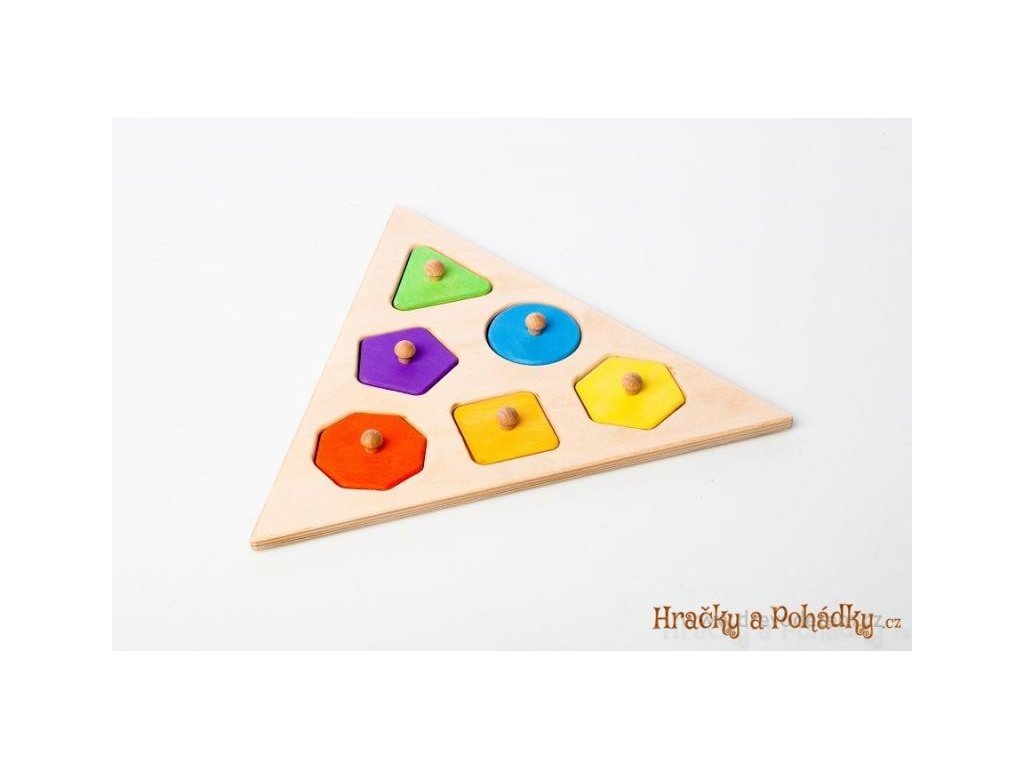 Dřevěné puzzle - vkládačka Dřevěná vkládací hračka pro nejmenší děti k účení barev, tvarů a procvičení jemné motoriky. Jednotlivé tvary vkládá dítě dovnitř. Delka strany trojúhelníku - 290 mm, výška 2,5 cm Hračka splňuje bezpečnostní normy a má certifikát nezávadnosti.Buďte první, kdo napíše příspěvek k této položce.