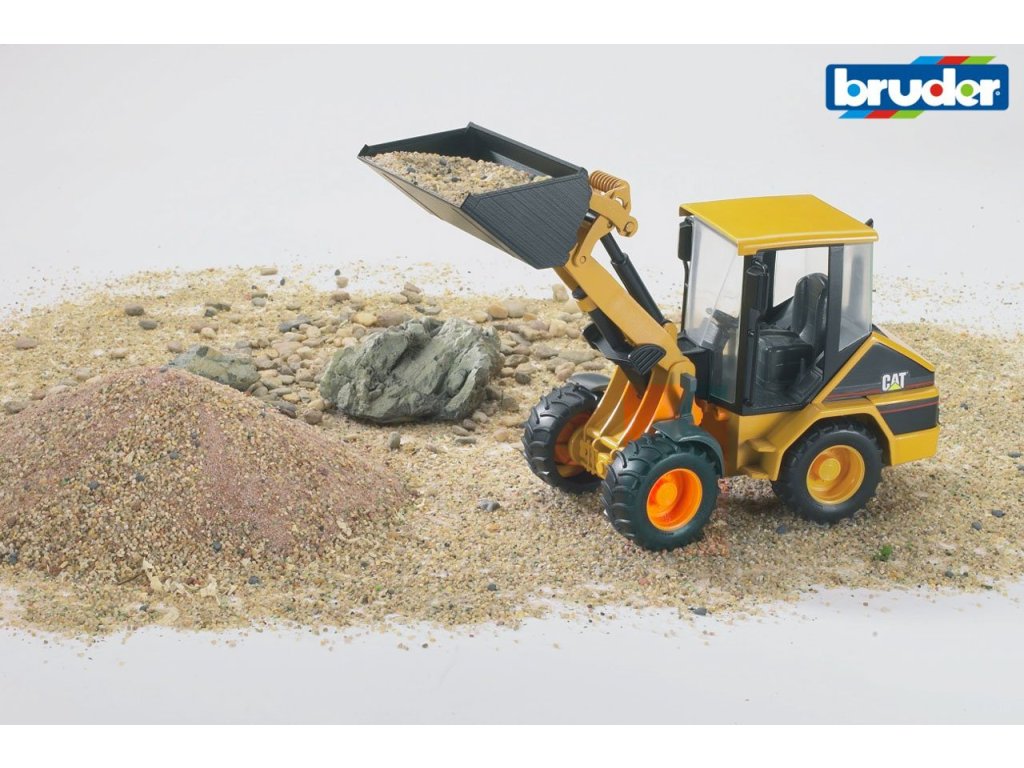 Bruder konstrukční kolový nakladač Nakladač je vyroben na bázi originálního modelu nakladače CATERPILLAR se všemi detaily. Model se vyznačuje vysokou odolností. Je vyroben z kvalitního plastu, určený pro hraní v interiéru i venku. Je vybaven plně funkčním nakládacím ramenem se sklápěcí a odjímatelnou přední lžící. Vozidlu nechybí ani pevné profilové pneumatiky, které mu umožní snadný pohyb v náročném terénu. Rozměry 330 x 160 x 110Doplňkové parametry