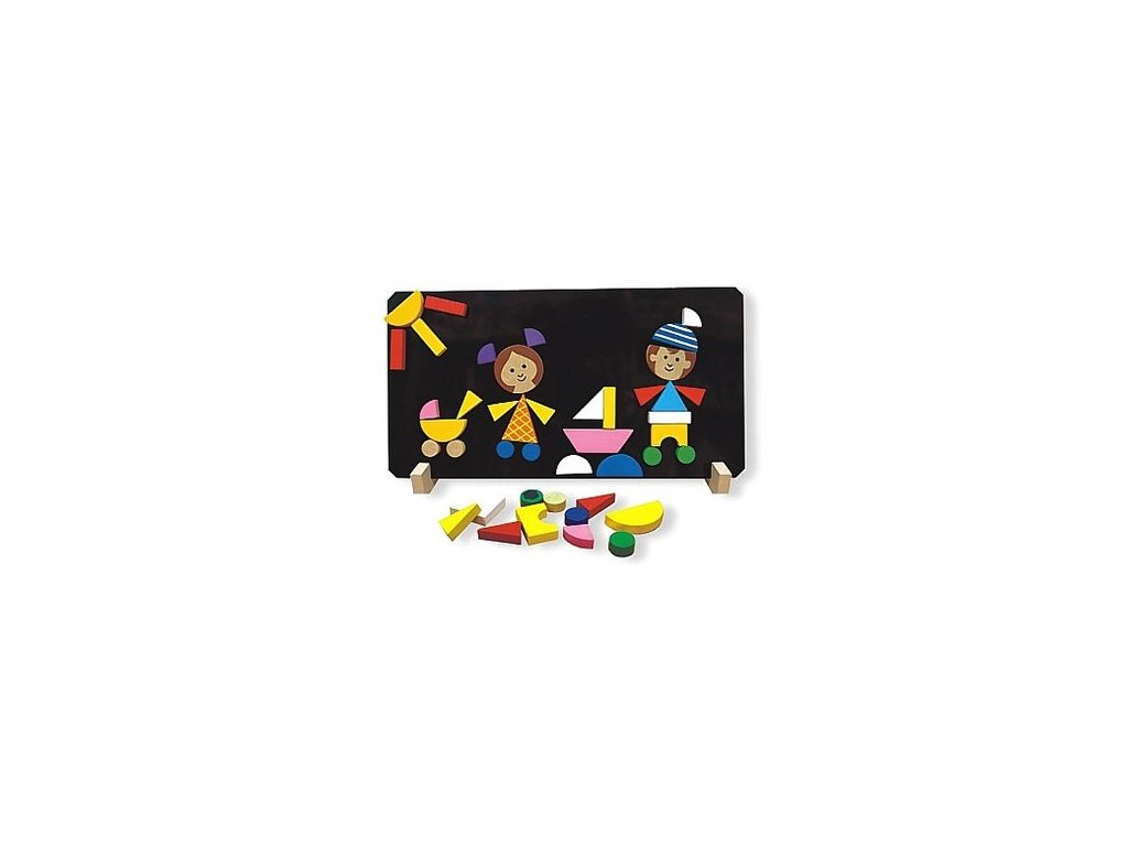 Dřevěné hračky pro děti Puzzle děti obsahují magnetickou tabulku, stojánek a 40 dřevěných dílků s magnetem, z nichž lze sestavit různé obrázky. Pomáhá rozvíjet jemnou motoriku a představivost. Baleno v krabici z tvrdého papíru. Nevhodné pro děti do 3 let. Obsahuje malé části. Rozměry výrobku 330 x 205 x 40 mm. Vyrobeno v České republiceBuďte první, kdo napíše příspěvek k této položce.