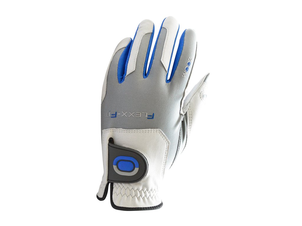 Univerzální golfová rukavice ZOOM. Tato univerzální pánská golfová rukavice ZOOM v barvě bílá-stříbrná-modrá je vyrobena z kůže a elastické látky. Je navržena tak aby dokonale sedla každé velikosti pánské ruky. Už nepotřebujete znát svou velikost rukavice! Tato golfová rukavice padne každé pánské ruce. Vyzkoušeno! Skladem na levou ruku.Doplňkové parametry