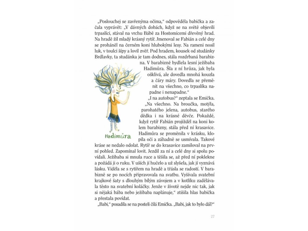 Jiří Kahoun - pohádky pro děti Spojení reality s pohádkovým příběhem a nezaměnitelným humorem autora, to vše najdete v knize Pidibabka z Brd. V malebném městě Berouně stojí dům, který vypadá jako kostka. Je to školka, kam chodí i povídalka Emička. A tahle holčička má babičku a dědu v jeskyňkové chaloupce schované za hustým křovím. Když je Emička s tatínkem navštíví, do chaloupky může vejít jen ona. Babička s dědou jsou totiž trpaslíci! Počet stran: 88 Vazba: Vázaný Rok vydání: 2015 Jazyk: česky Rozměr: 163 x 238 mm kombinovaný potah s plátěným hřbetemDoplňkové parametry