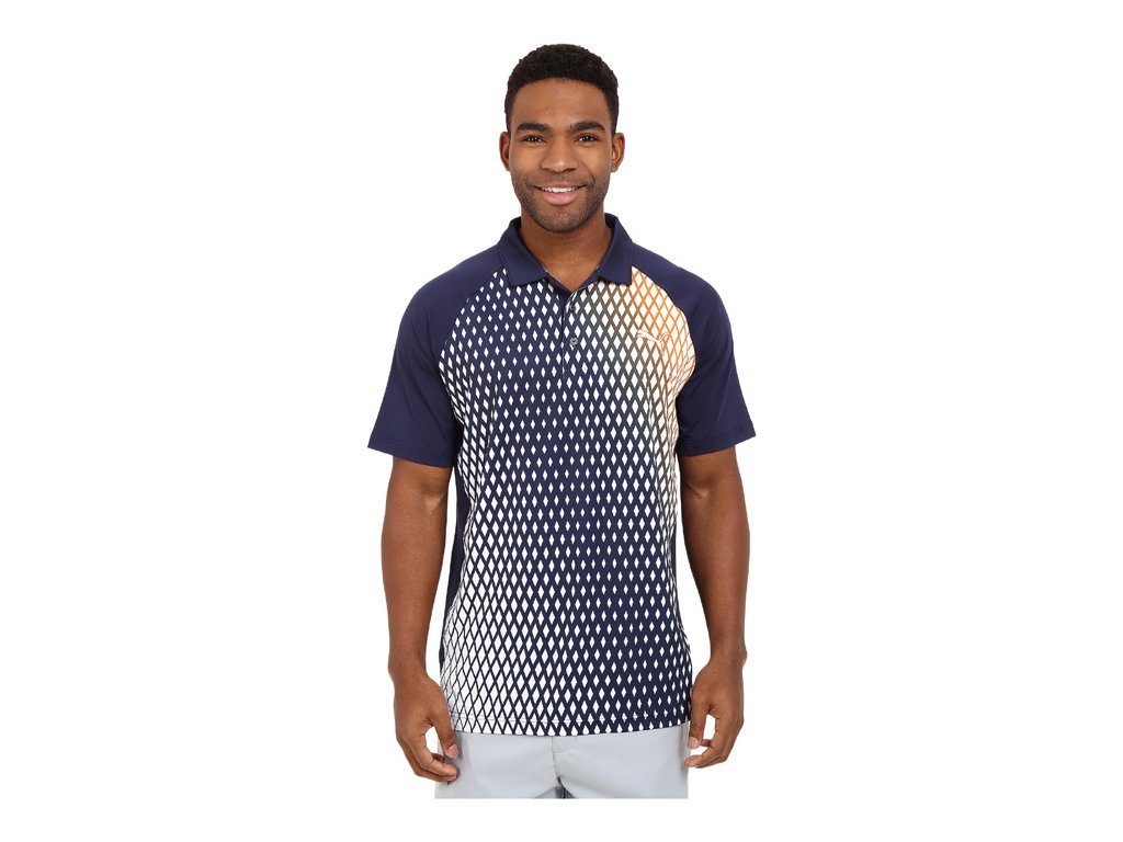 Golfové oblečení Puma Pánské goflové tričko Puma Dimension Polo v tmavomodré barvě s oranžovým a bílým designem na přední straně trička. Záda jsou celá tmavomodrá. Tričko je z lehkého, hladkého materiálu, který dobře odvádí pot, je střiženo do sportovního střihu a designově je velice povedené. Materiál: 92% polyetser, 8% elastaneDoplňkové parametry