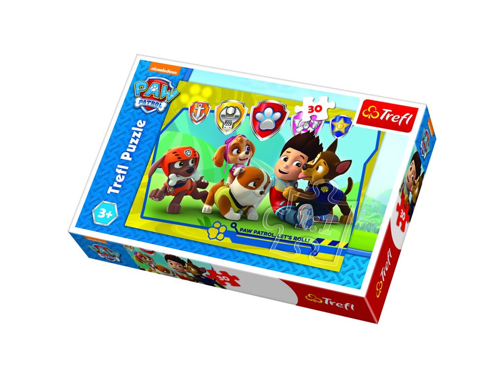 Dětské puzzle s motivem z pohádky Tlapková patrola. rozměr složeného puzzle: 27 × 20 cm přibližná velikost dílku: 4,2 cm Doporučeno pro děti od 3 let.Doplňkové parametry